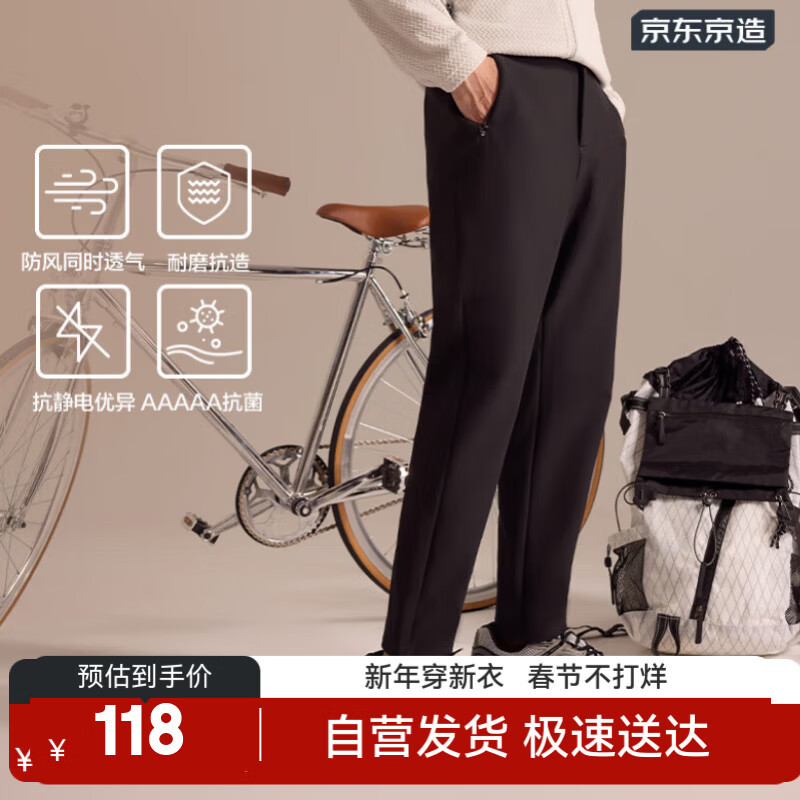 京东京造风盾300软壳裤耐磨户外防风专业登山徒步裤男款 曜石黑 L