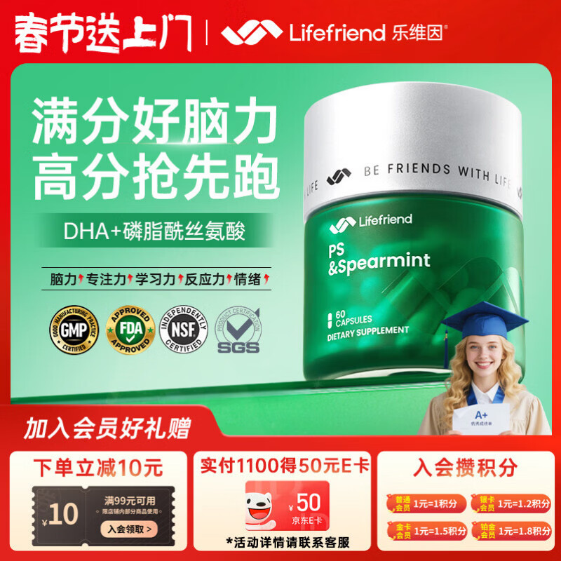 lifefriend乐维因 补脑学生DHA记忆力专注力青少年12岁神经酸PS磷脂酰丝氨酸