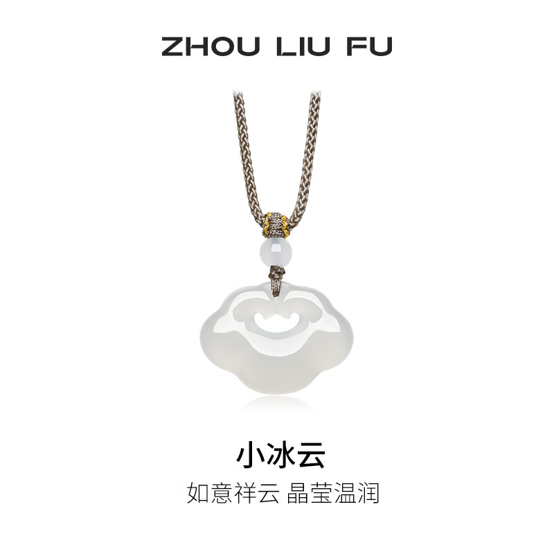 周六福(ZLF) 白月光玉髓项链男女款小冰云挂坠祥云如意锁吊坠送礼 祥云如意锁项链