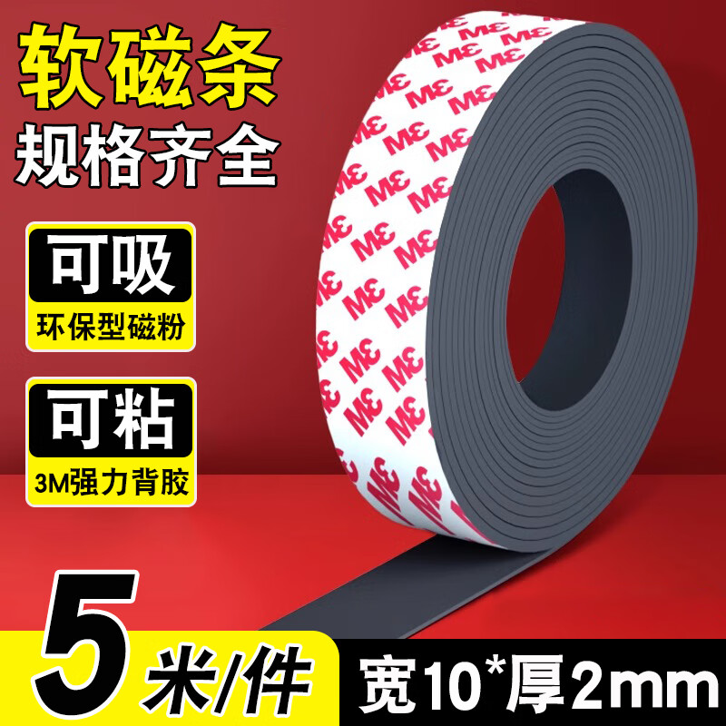智钻 软磁条贴磁铁贴片纱窗门帘磁吸条3M胶磁力贴长条吸铁石教学办公磁铁条橡胶磁性贴 宽10x厚2mm 5米