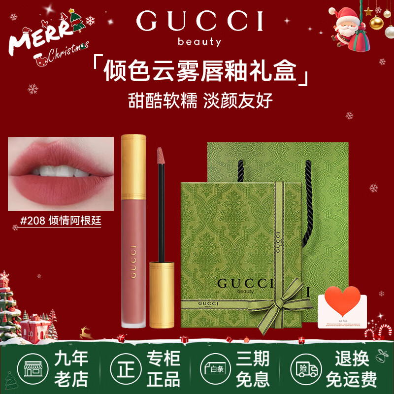 古驰(GUCCI)口红倾色云雾唇釉 哑光雾面金管唇釉蒸汽啵 生日情人节礼物女生 【热卖】208#蜜桃奶茶(礼盒装)