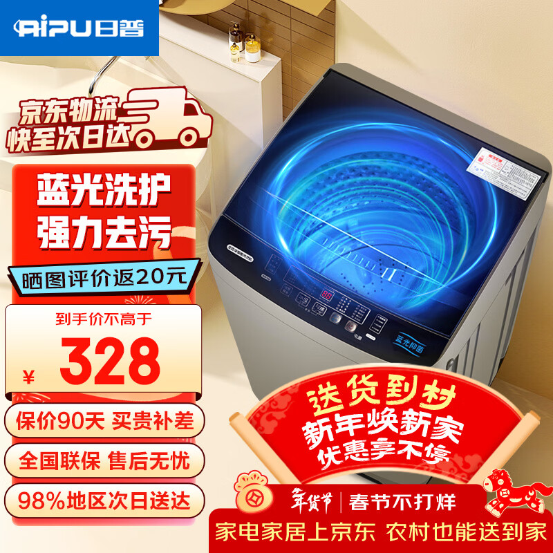 日普(RIPU)波轮洗衣机全自动 大容量洗衣机家用宿舍租房神器 12公斤金色【蓝光洗护+风干洁桶+强动力电机】 波轮