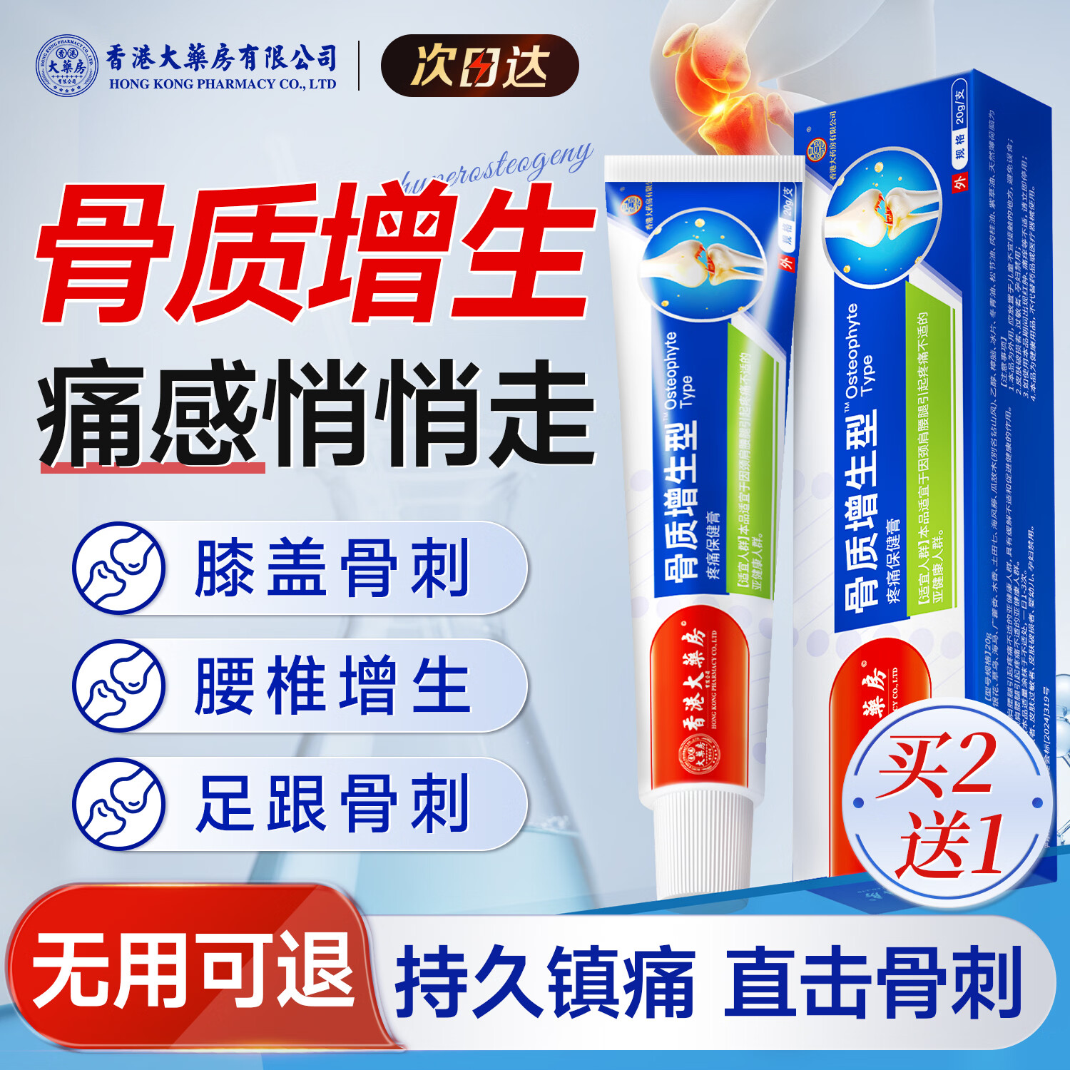 香港大药房有限公司骨质增生骨刺专用贴膏颈椎膝盖疼痛积液关节腰椎间盘突出透骨膏