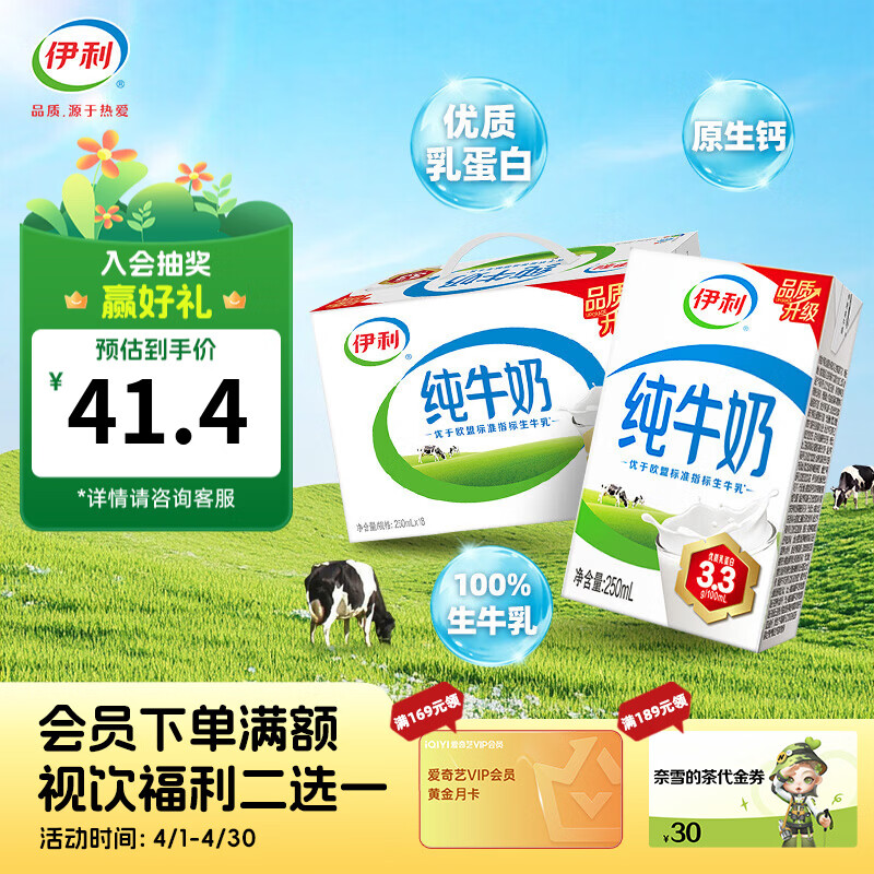 伊利纯牛奶18盒/箱 全脂牛奶优质乳蛋白 营养早餐伴侣1月产 250ml*18盒/箱
