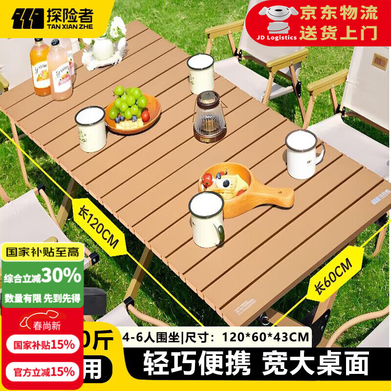 探险者(TAN XIAN ZHE)户外蛋卷桌折叠桌便携式桌椅套装露营桌子一套野餐桌装备全套摆摊 升级稳固加粗桌【120*60*46】木色2-6人