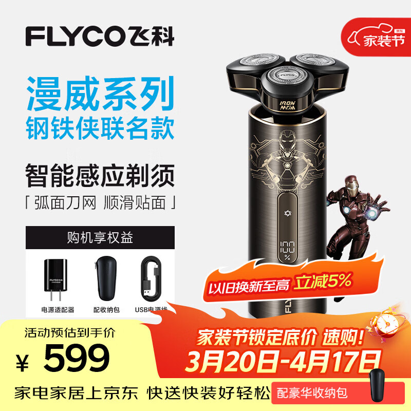 飞科(FLYCO)【王一博推荐】男士电动刮胡剃须刀FS989便携款生日礼物送男友送父亲-漫威钢铁侠联名款