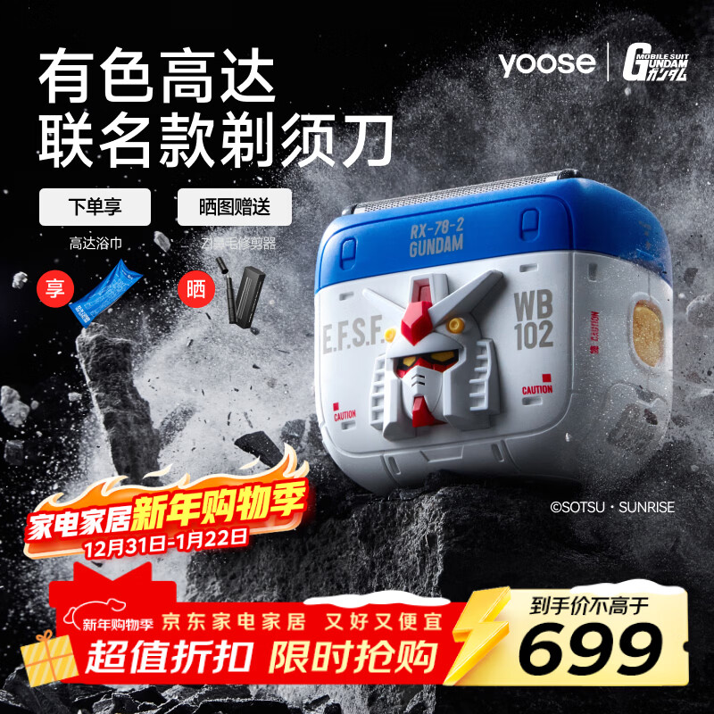 有色(yoose)【高达联名款】剃须刀便携往复式5刀电动迷你刮胡刀 男士生日圣诞节礼物送男友老公胡须刀礼盒