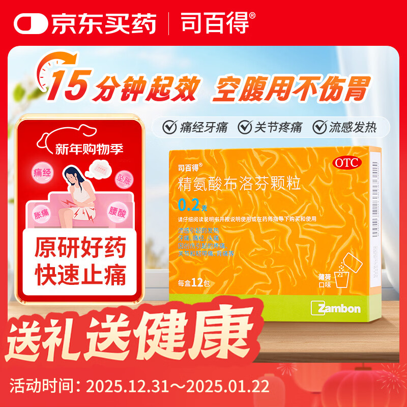 【原研药】司百得精氨酸布洛芬颗粒0.2g*12包 痛经牙疼痛头痛关节韧带痛 流感感冒退烧
