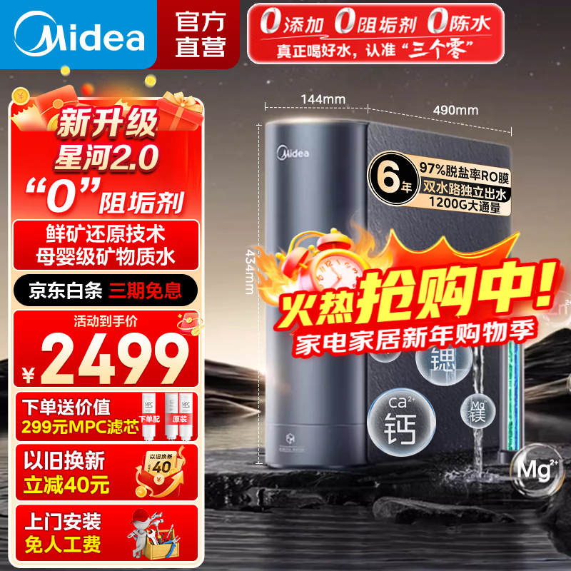 美的(Midea)净水器 星河2.0净矿家用净水机零陈水3.0直饮机矿物质水0阻垢剂1200G反渗透厨下式净饮机母婴直饮 【星河2.0净矿双水】升级1200G大通量