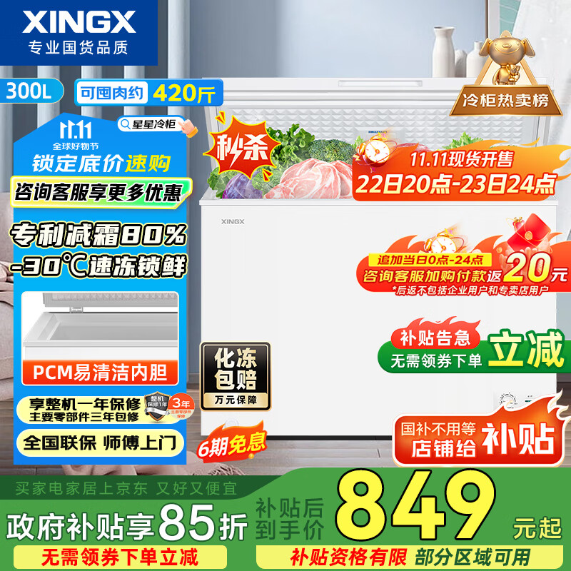 星星(XINGX)300升家用减霜净味冰柜 冷藏冷冻转换冷柜 节能顶开冰箱 BD/BC-300QJ国家补贴