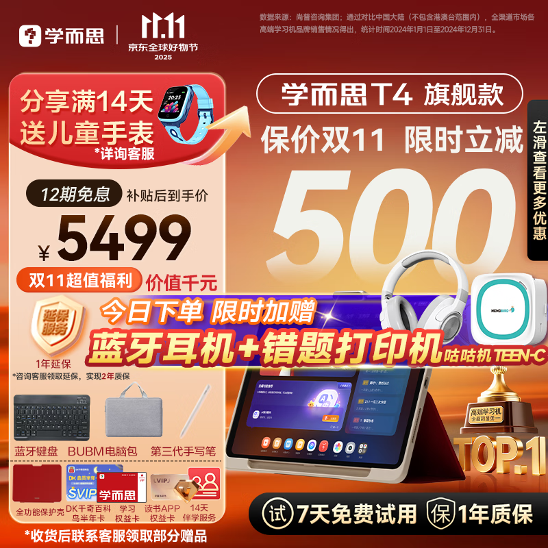 学而思2025重磅新品T4旗舰款 AI学习机 护眼大屏 全学段 小初高 校内同步 支持deepseek 13.2英寸 【赠错题打印机】T4(8+256G)