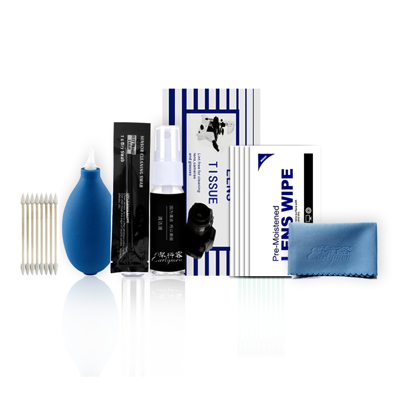 早行客(earlymen)清洁养护套装相机摄像机望远镜投影仪镜头清洗工具气吹清洁液清洁布湿巾棉棒全画幅清洁棒等