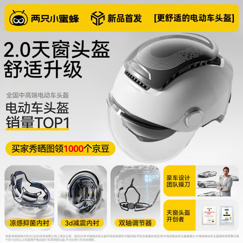 两只小蜜蜂3C认证电动车头盔摩托车四季通用半盔 防晒防雾双镜 0感天窗 男女通用电瓶车头盔TK47