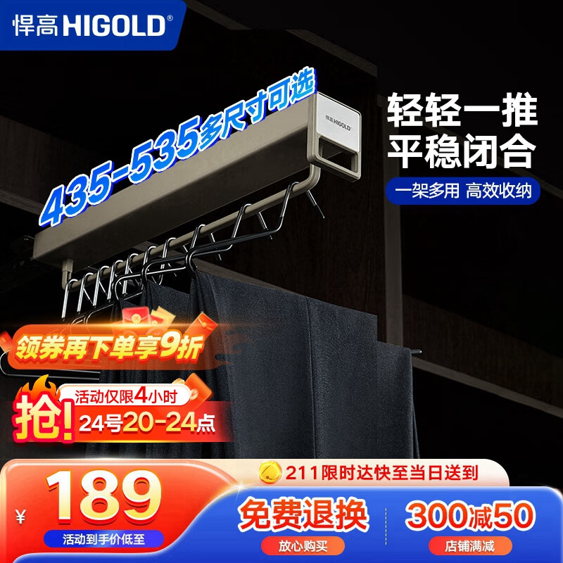 悍高(HIGOLD)A系列顶装裤架柜内收纳架裤架钴铂金(柜深≥53.5cm内宽≥30cm)