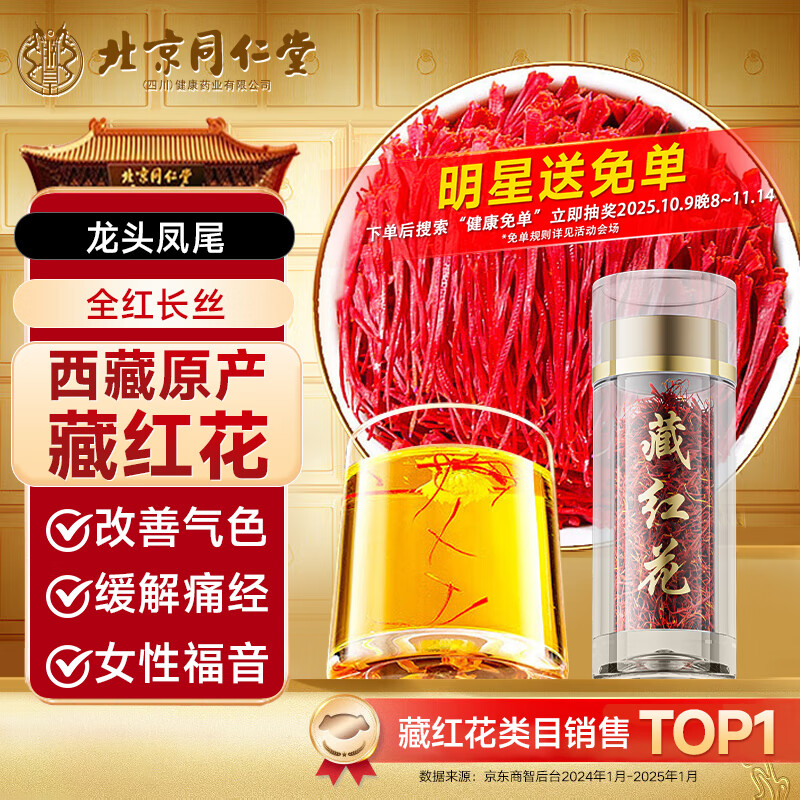 同仁堂藏红花西藏特级正宗中药材礼品送女士妈妈母亲礼盒礼物1g