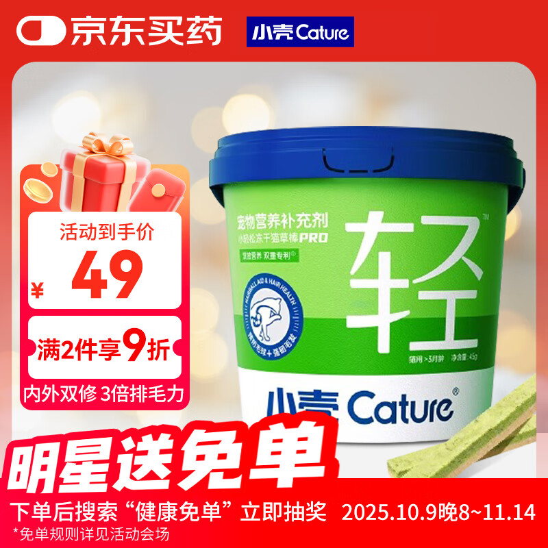 小壳小轻松冻干猫草棒PRO猫咪功能零食化毛片毛球排毛固毛45g