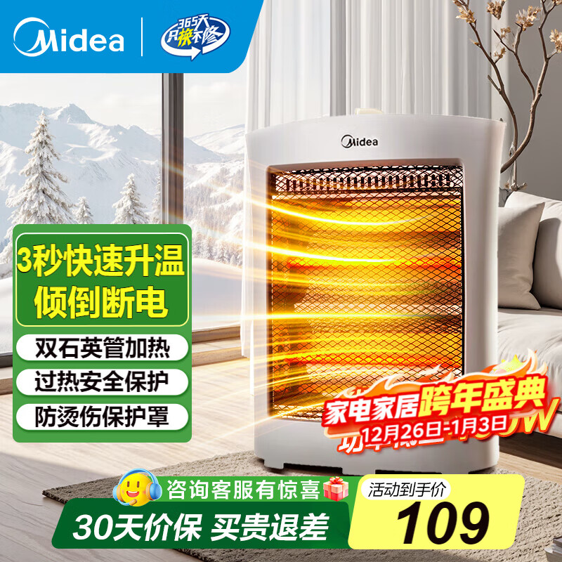 美的(Midea)小太阳取暖器家用电暖器台式电热器暖气机办公室烤火炉暖脚器暗光防烫远红外电暖气国家补贴 HPW08D【倾倒断电 过热保护 高级浅灰】 台式