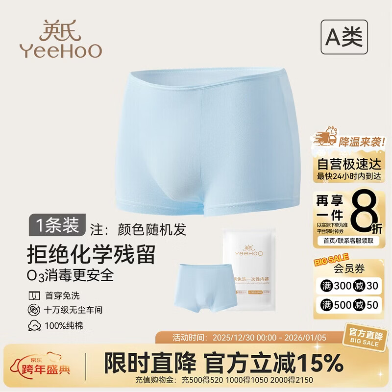 英氏儿童一次性内裤男童女童首穿免洗纯棉单条【体验装】