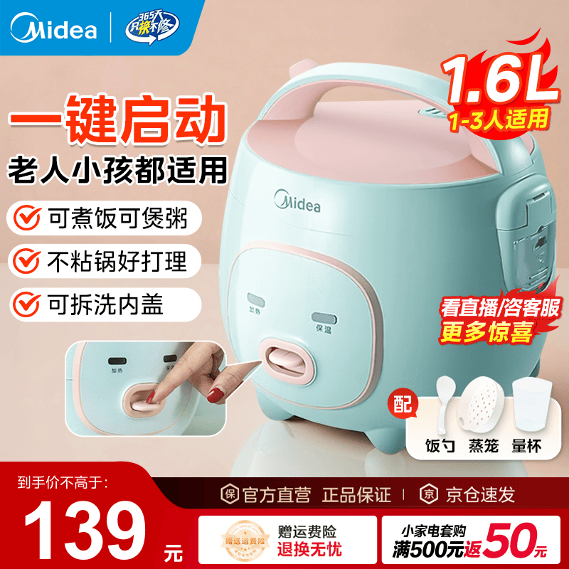 美的(Midea)电饭煲电饭锅家用商用柴火饭多功能预约小型迷你煮饭2-3-4-5-8人大容量快煮饭不锈钢内胆不易粘锅 0涂层 3L 母婴级316L不锈钢内胆卡其灰偏白