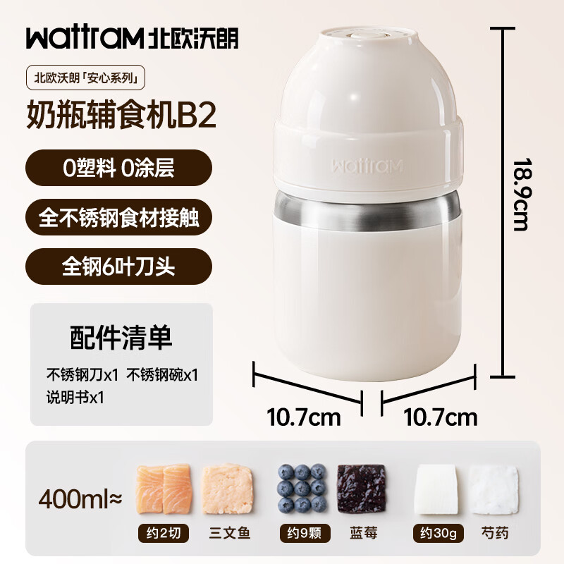 北欧沃朗小奶瓶辅食机婴儿绞肉机0涂层家用小型多功能米糊料理机搅拌机研磨杯B2-400ml标配
