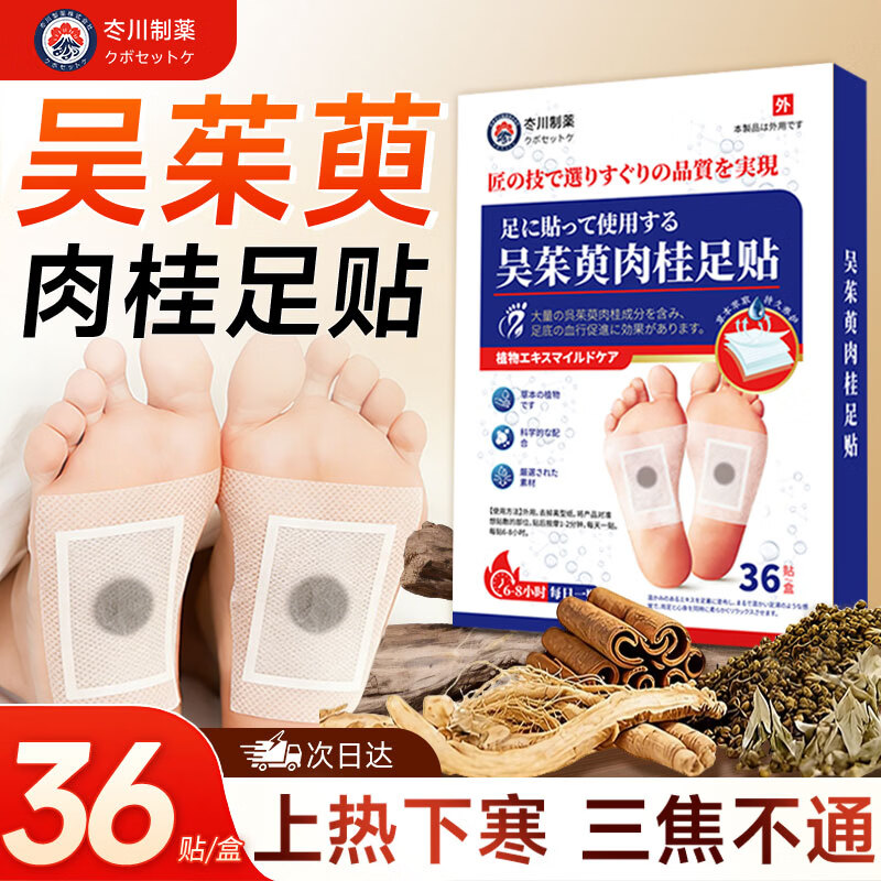 冭川制药吴茱萸肉桂足贴去湿气排毒体内湿寒大肚子减肥艾灸草助睡眠暖脚贴