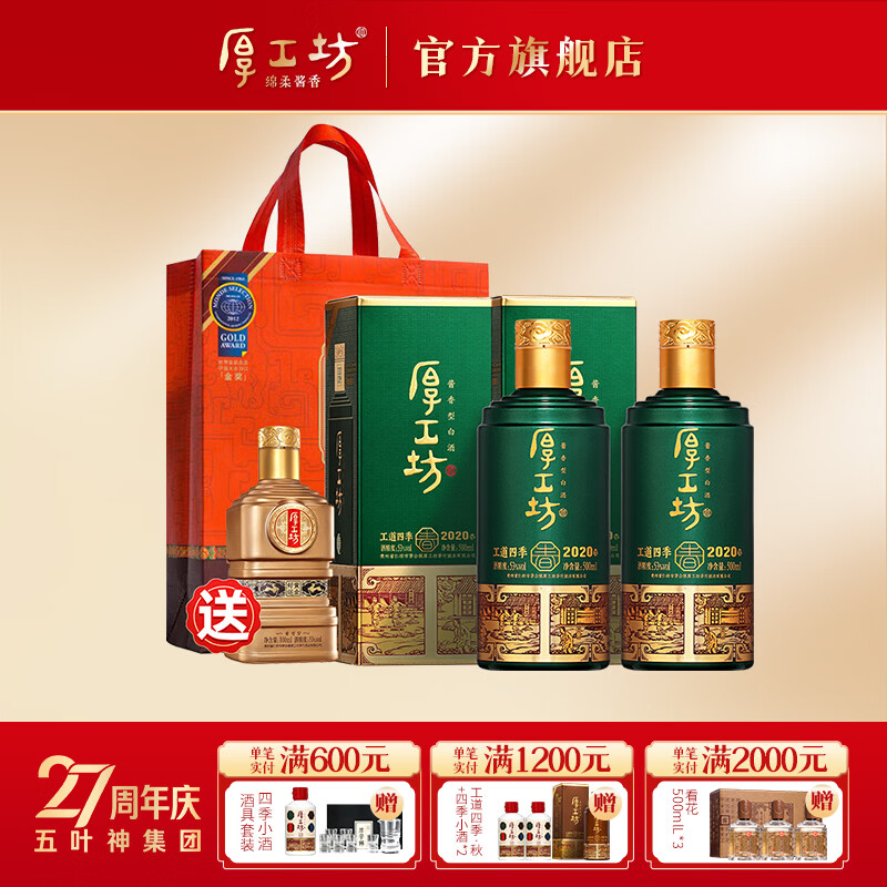 厚工坊【热卖推荐 】工道四季 春 夏 秋 冬 茅台镇酱香型53度白酒 53度 500mL 2瓶 (春2瓶)