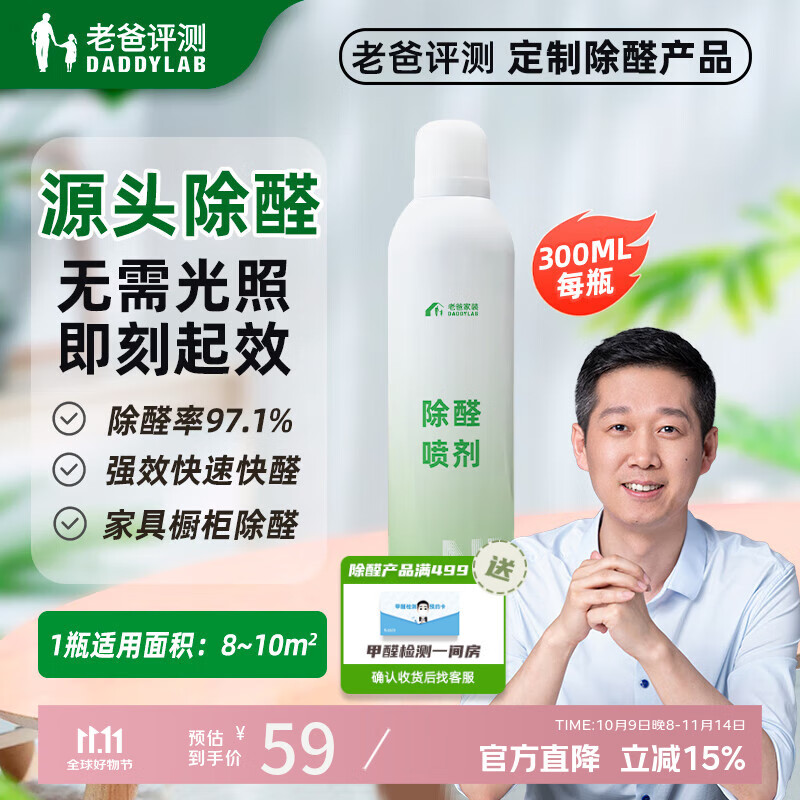 老爸评测除甲醛喷雾甲醛清除剂大面积长效除醛板材橱柜新房快速入住 300ml