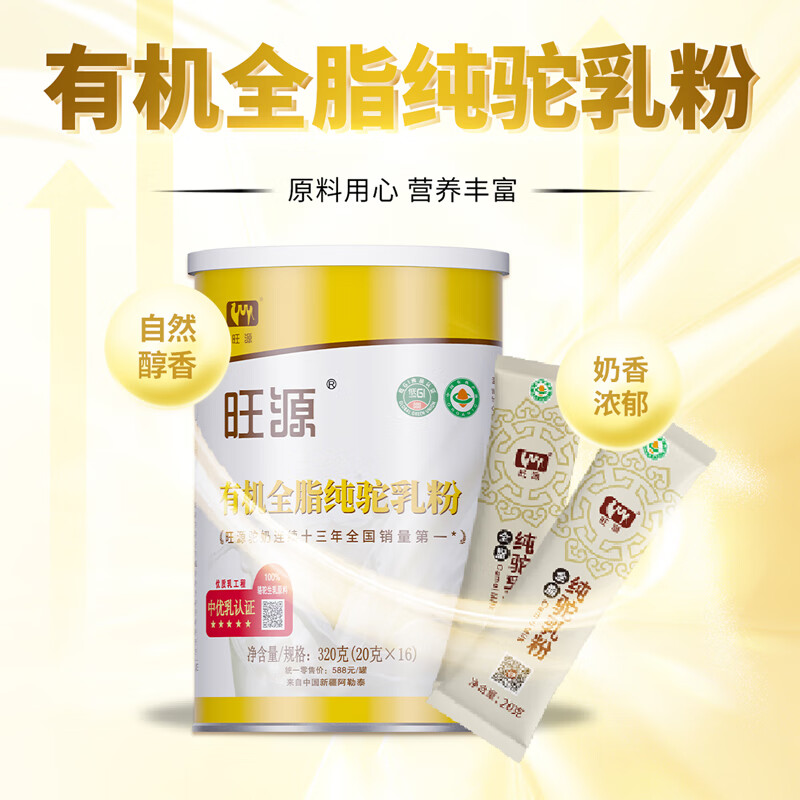 旺源新疆旺源有机全脂纯驼乳粉320g 成人中老年高钙高蛋白纯骆驼奶粉