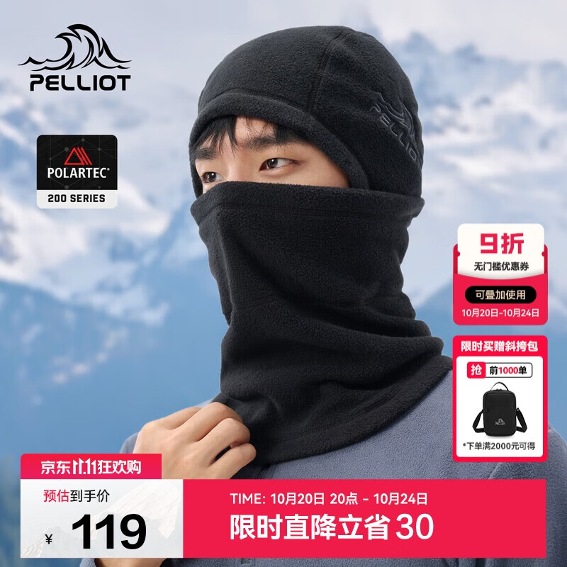 伯希和(Pelliot)滑雪面罩户外抓绒帽冬季帽子Polartec200登山防寒164334406黑色