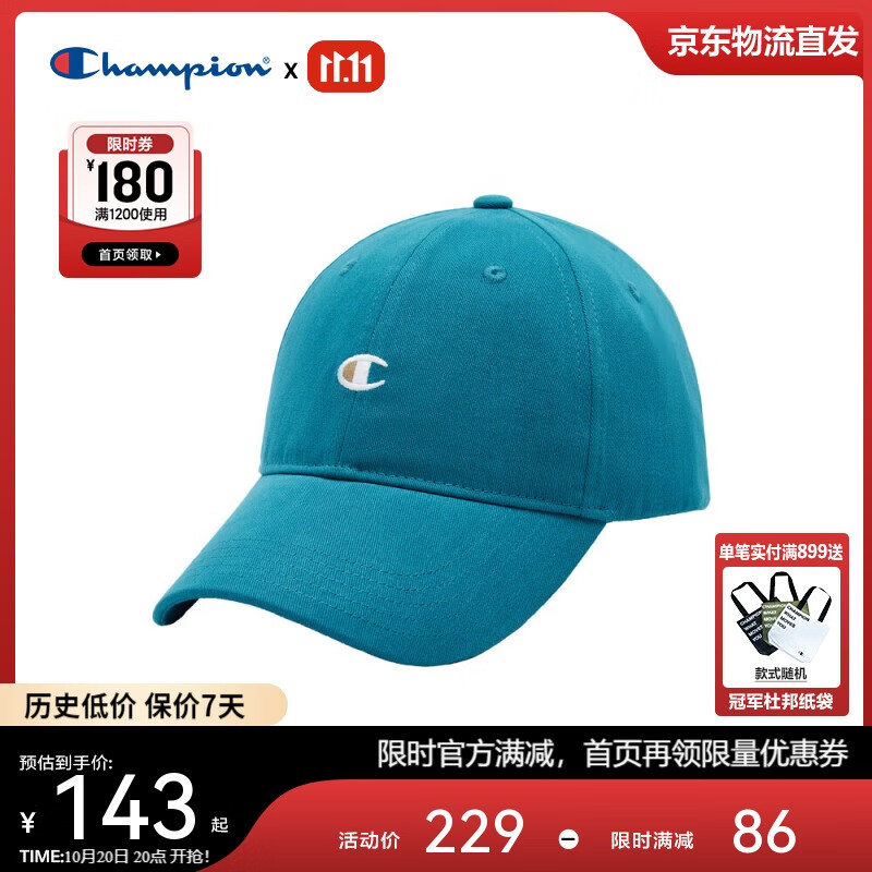 Champion美国冠军鸭舌帽男女 简约休闲防晒时尚棒球帽 24FWA02 湖蓝 均码
