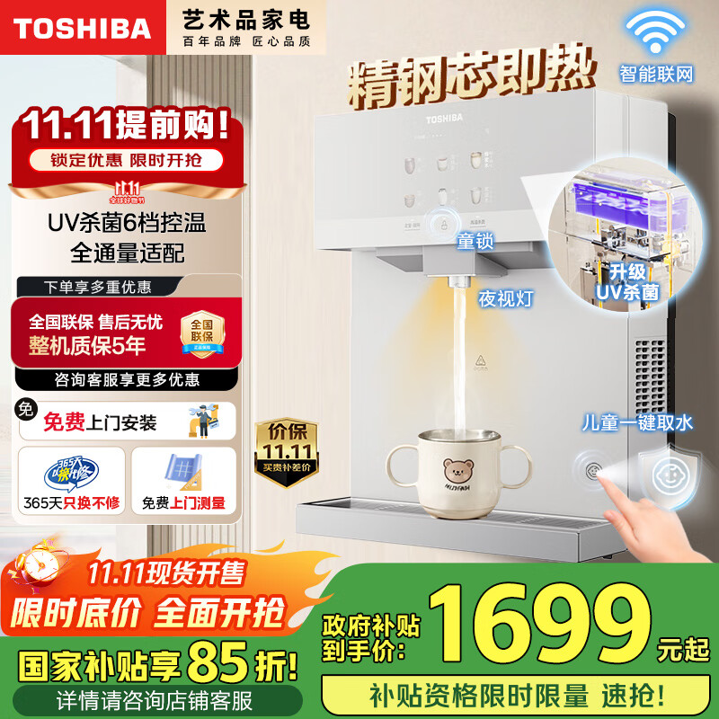东芝(TOSHIBA)【大白梨TG-02】壁挂管线机全通量适配 精钢芯速热 UV杀菌贴心夜灯即热直饮机家用饮水机 国家补贴