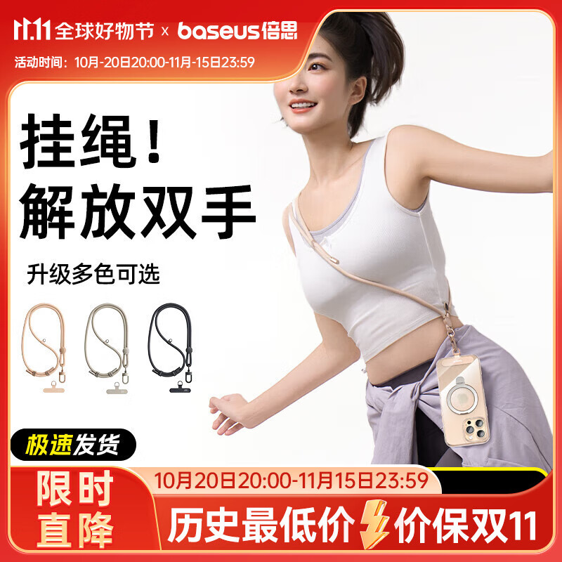 倍思手机挂绳 斜挎挂脖绳可伸缩调节防丢垫片编织手腕绳夹片防摔户外适用苹果16ProMax/Mate60/70华为