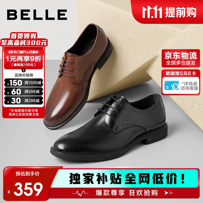 百丽男鞋商务正装皮鞋休闲增高软底真皮鞋10503AM0 黑色-经典版 41
