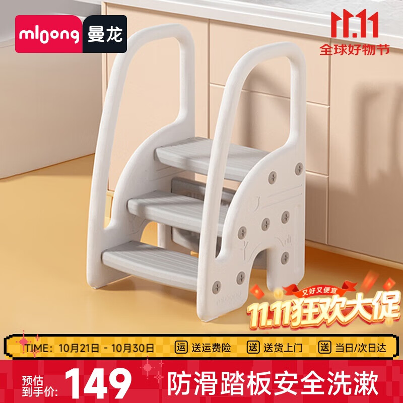 曼龙儿童三阶扶手凳宝宝踩脚凳卫生间防滑台阶凳脚踏凳洗手凳 灰色