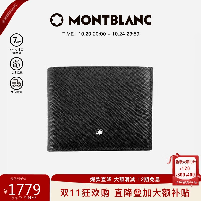 万宝龙MONTBLANC匠心系列黑色6cc皮革钱包/钱夹130315男士礼物