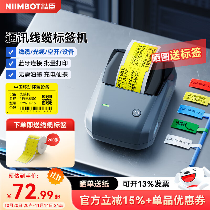 精臣B1通信线缆智能标签打印机 机房网线光纤光缆电线移动电信刀型尾签空开开关手持小型便携蓝牙打印