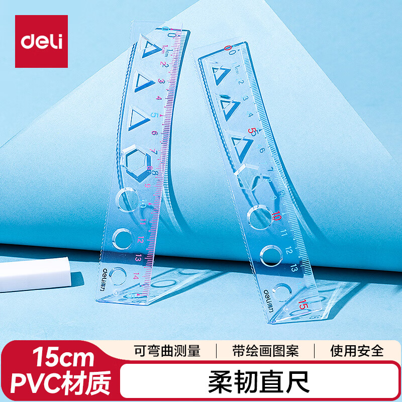 得力(deli)15cm透明软直尺 绘图尺/韧性好不易折断耐用柔软 尺子学生 颜色随机