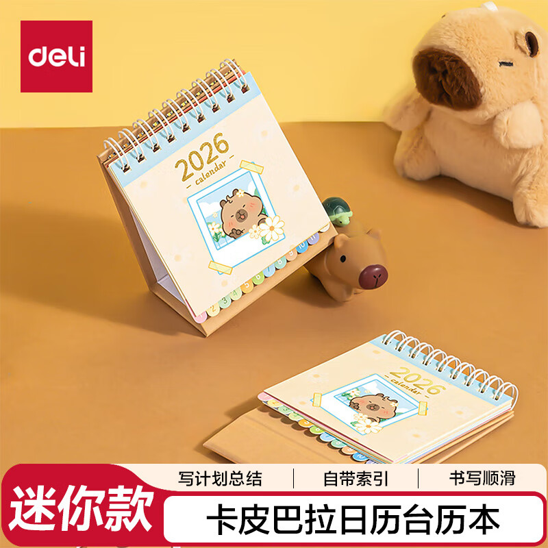 得力(deli)卡皮巴拉日历生活常用日历台历小号迷你款棕色BL216