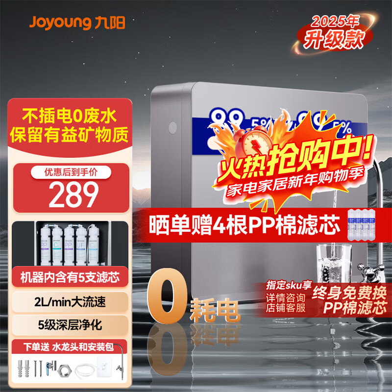 九阳净水器家用 超滤直饮净水机 无桶设计大流速无废水壁挂台面厨下自来水过滤器JYW-RC328