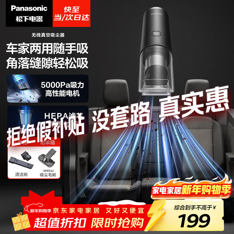 松下(Panasonic)【除尘神器】车载吸尘器无线大吸力小型手持长续航家用便携高效吸猫毛除毛除尘团购礼品MC-HC11H