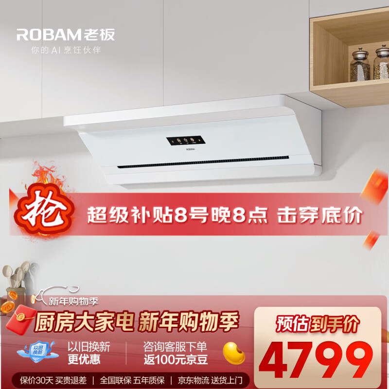 老板抽吸排油烟机上门安装顶侧吸超薄以旧换新29大吸力静音一级能效盐系G2白色可配燃气灶孟子义同款