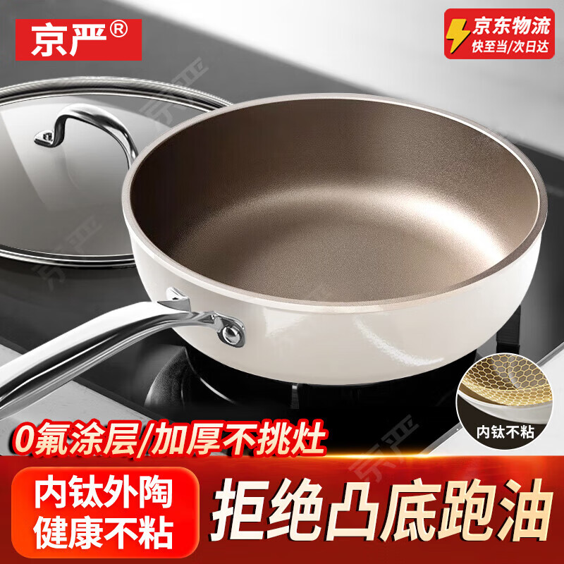 京严钛陶瓷平底锅不粘锅小煎锅家用煎饼蛋煎牛排专用电磁炉 【深煎锅】煎炒两用28 售后无忧