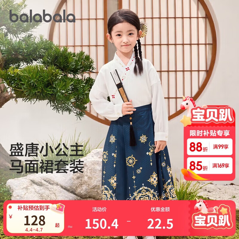 巴拉巴拉童装女童马面裙儿童汉服唐装春秋装国风公主古风套装拜年服