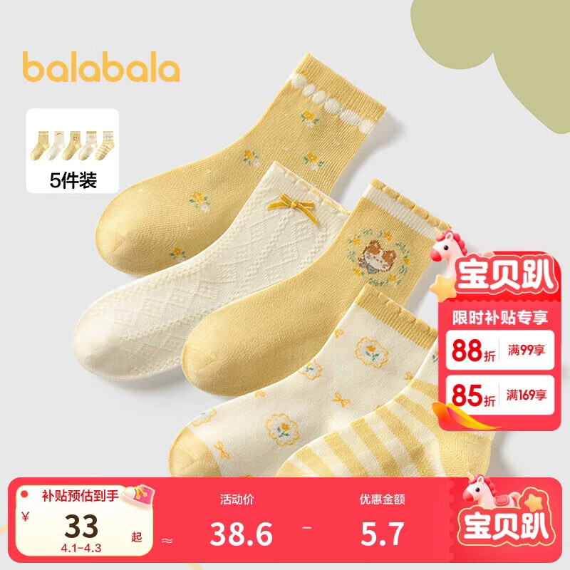 巴拉巴拉女童袜子儿童袜夏薄款中幼童柔弹舒适提花甜美五双装209925172098
