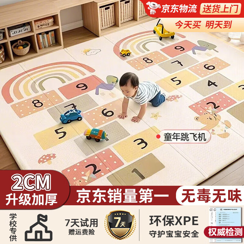 贝初众宝宝爬行垫婴儿爬爬垫折叠双面xpe家用客厅卧室儿童加厚防摔地垫 童年跳飞机【180*200*2CM】 婴幼儿无味无毒无甲醛婴儿用早教中心垫子