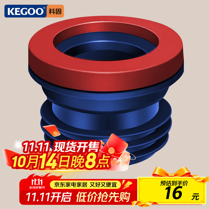 科固(KEGOO)马桶法兰密封圈坐便器 卫生间座厕排污口防漏水加长胶圈通用K5028