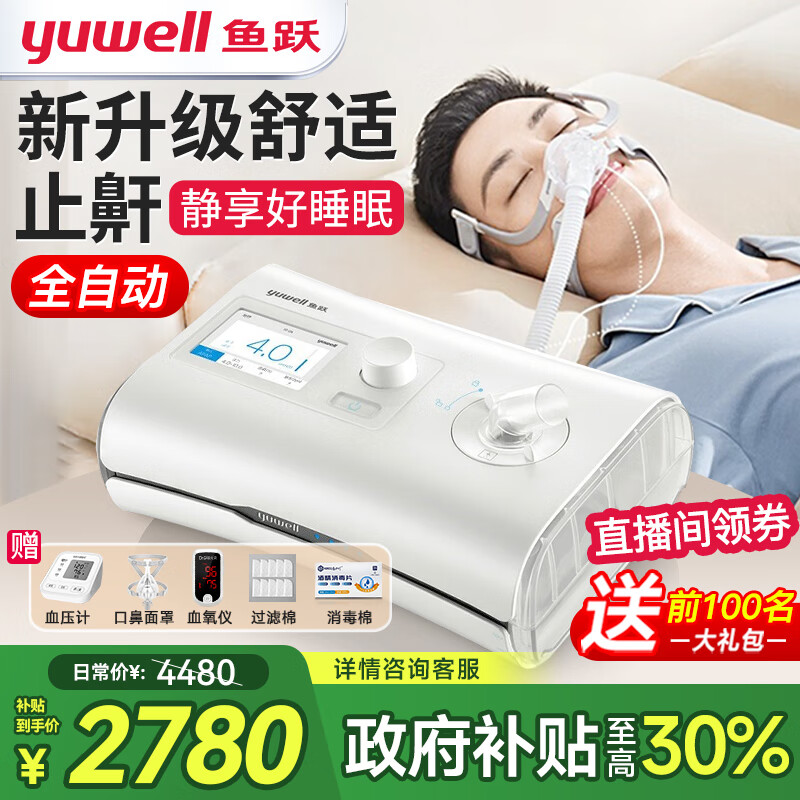 鱼跃(Yuwell)全自动呼吸机家用医用无创睡眠打呼噜打鼾呼吸暂停CPAP止鼾器面罩 【爆款热卖】YH550新升级-低噪高舒适止鼾单水平