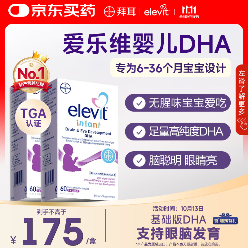 Elevit爱乐维dha婴幼儿藻油胶囊60粒*2 0-3岁dha藻油婴儿dha 高纯进口