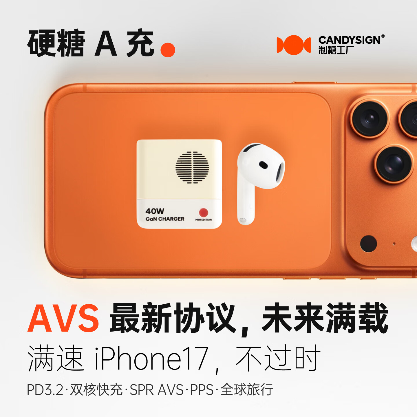 CANDYSIGN【iPhone17首选】制糖工厂硬糖A充40W氮化镓AVS快充头适用iPad苹果17/16安卓PD快充TypeC