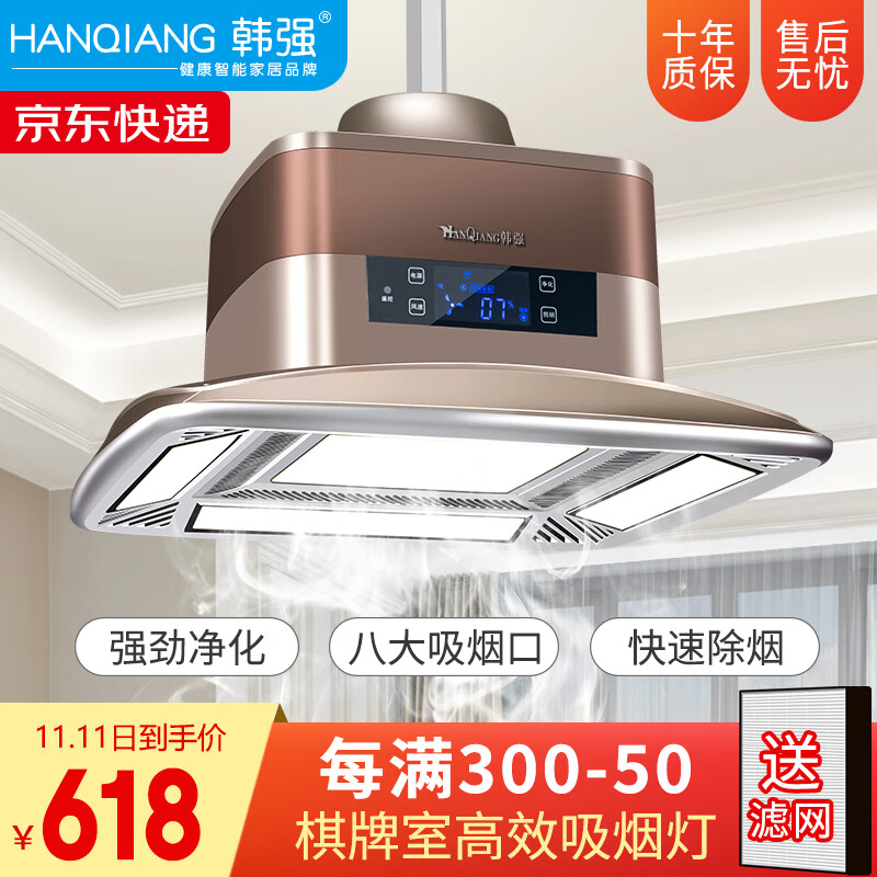 韩强麻将灯棋牌室空气吸烟净化器遥控自动升降吊灯智能家居净化灯 大五灯_香槟金(配显示屏)